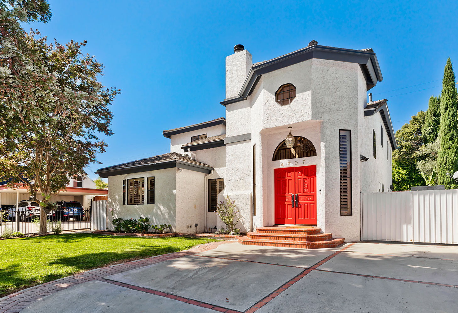 Enchant your senses in this one of a kind home. Located on a treelined street in prime Sherman Oaks. Arrive at the gated driveway and enter through the red double doors into this stylish two-level home. The living room has high ceilings and a fireplace that bring a blissful elegance to it. Prepare delicious meals in the open plan renovated kitchen while entertaining guests in the adjacent family room. Two bedrooms downstairs ideal for guests or home office while one could serve as a second master suite. Upstairs you will find a large master suite with sitting area, walk-in closet, as well as an en-suite bathroom with freestanding deep soaking tub and standalone steam shower. Two other bedrooms and full bath complete the upstairs level. The backyard has a beautiful pool and spa, and plenty of space for outdoor fun with friends and family. A short walk from restaurants, bars and retail shopping on Ventura Blvd including the Sherman Oaks Galleria. Easy access to the 101 and 405 freeways.
